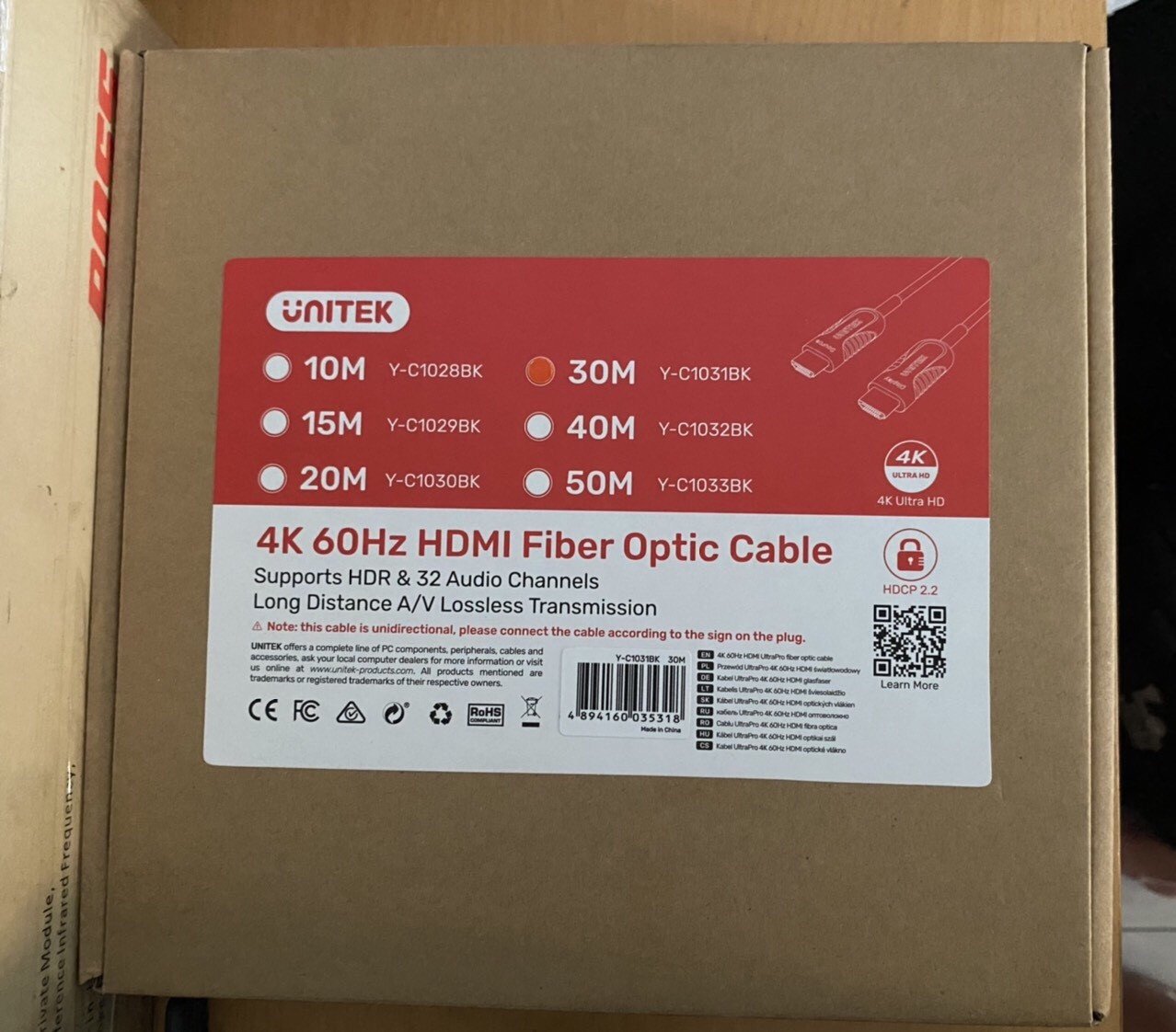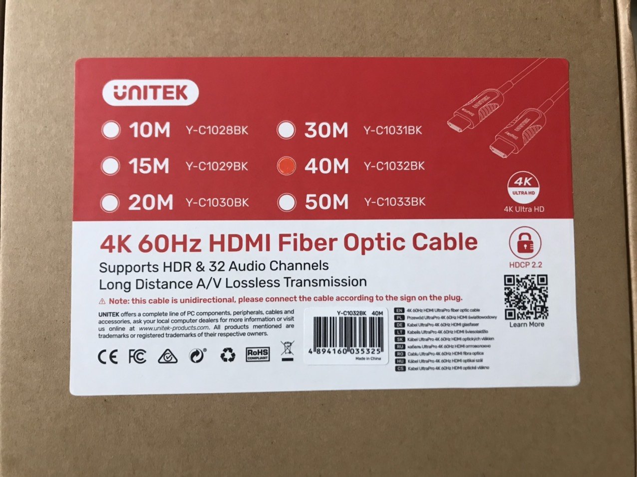 CÁP HDMI 2.0/4K - 20M ULTRAPRO ACTIVE OPTICAL UNITEK (Y-C 1030BK)