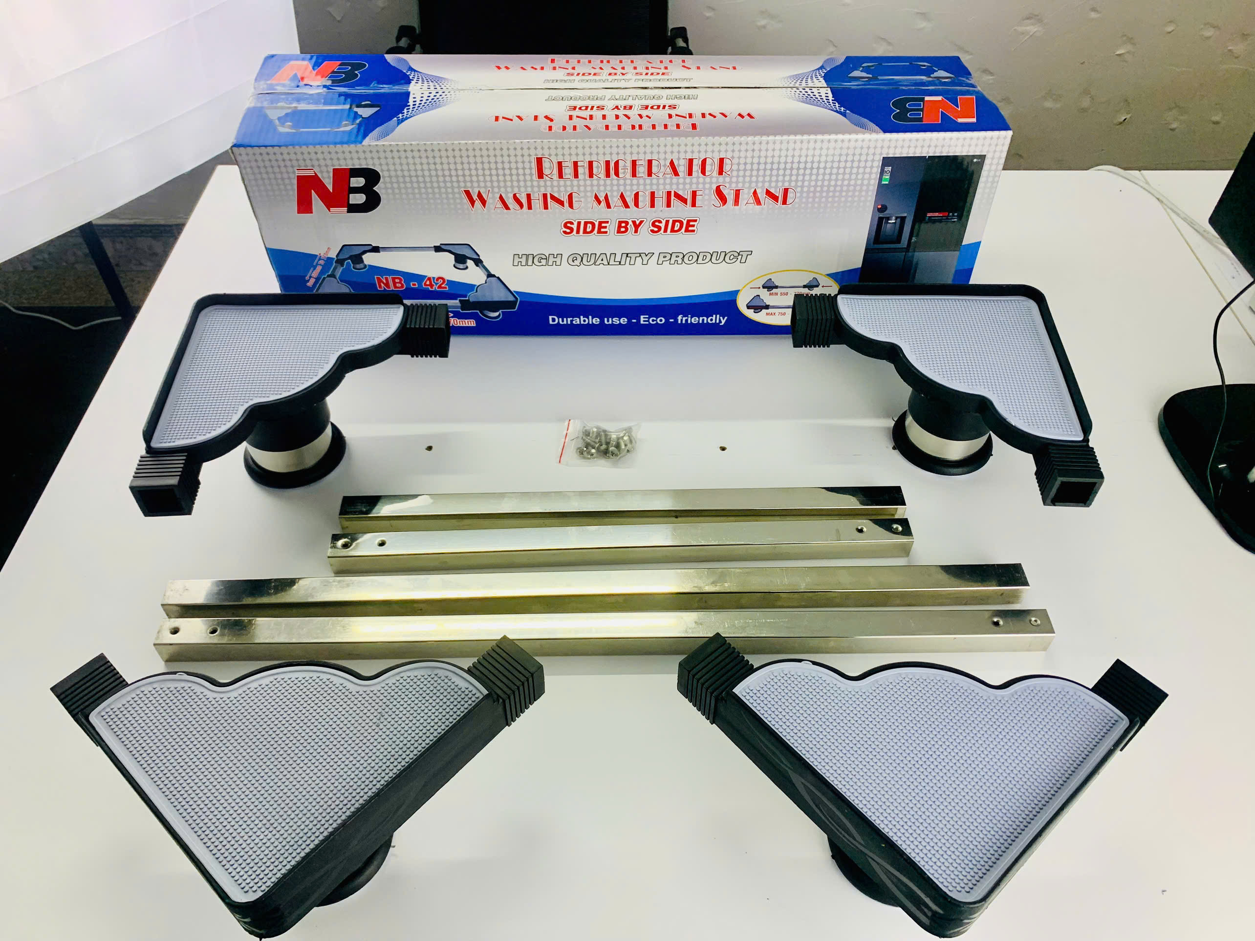Chân Đỡ Máy Giặt, Tủ Lạnh inox NB-40 (550mm – 770mm) *mẫu mới* có lót cao su chống trượt (NB-40 | Tải trọng: 15kg - 600 Lít )