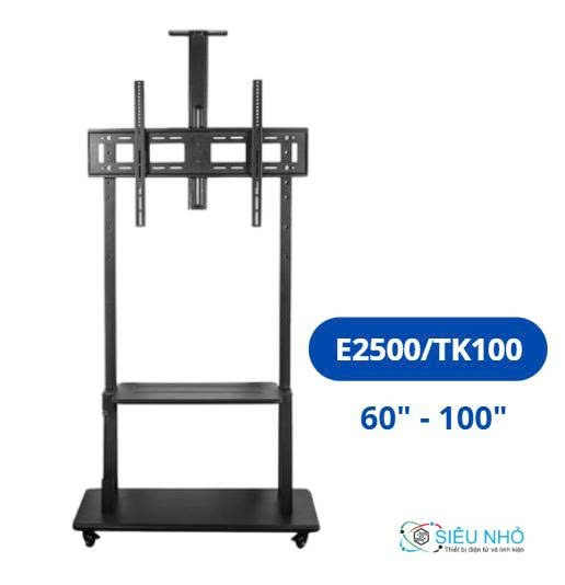 Giá treo tivi di động E2500 75 - 110 inch là hàng nhập khẩu với thiết kế hiện đại, phù hợp với các không gian văn phòng, triển lãm mang đến sự tiện lợi, sang trọng cho cả không gian sử dụng. Giá treo tivi di chuyển có bánh xe tích hợp các kệ để camera phía trên, giá để đầu thu hoặc laptop. Đặc biệt dưới mặt chân đế có thể để các thiết bị – ví dụ đặt case máy tính bàn…